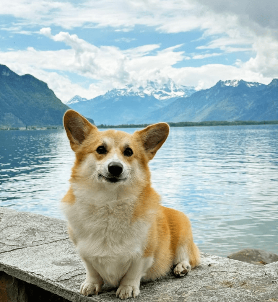 For the record, I really suck at taking pictures at events (totally not meant to be an influencer) as I like to “be in the moment” but also maybe because I am busy chasing after my child, so here’s a picture of my dog, Oslo, in Montreux along the lake to really sell this view!